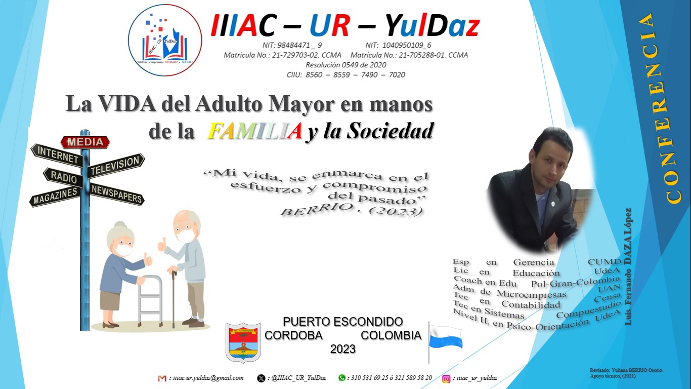 El sentido de la vida de la persona como adulto mayor, debe abrir camino ante su amor, lealtad y compromiso. La expresión tercera edad, es una expresión antrópico-social. Nos centraremos en la inclusión familiar y social, ante el sentido de vida y dignidad por el lugar que le corresponde en la familia y en la sociedad. Finalizaremos con un espacio-activo de reflexión ante el significado a la "inclusión, cuidado y protección de la vida de la persona como adulto mayor" BERRIO, (2023)